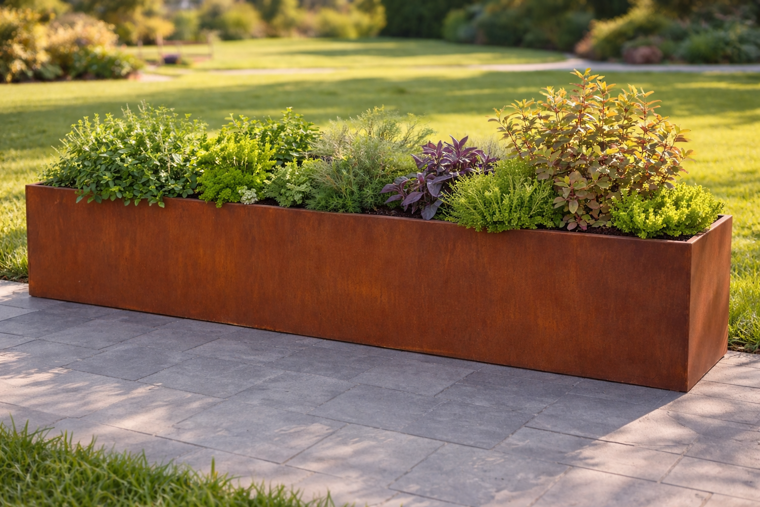 Cortenstål er et bæredygtigt valg: Lang levetid, minimal vedligeholdelse og 100% genanvendeligt. Perfekt til både blomster og grøntsager – og til dig, der vil skabe smukke, holdbare uderum med omtanke for miljøet.