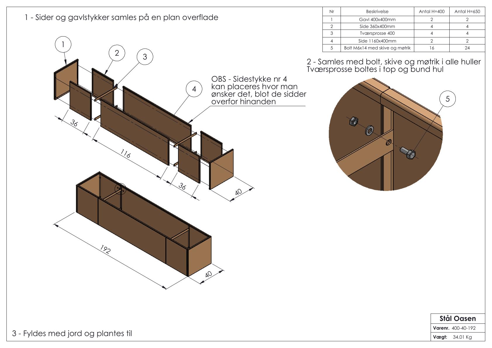 - Højbedet er uden bundplade og placeres direkte på græs eller jord.