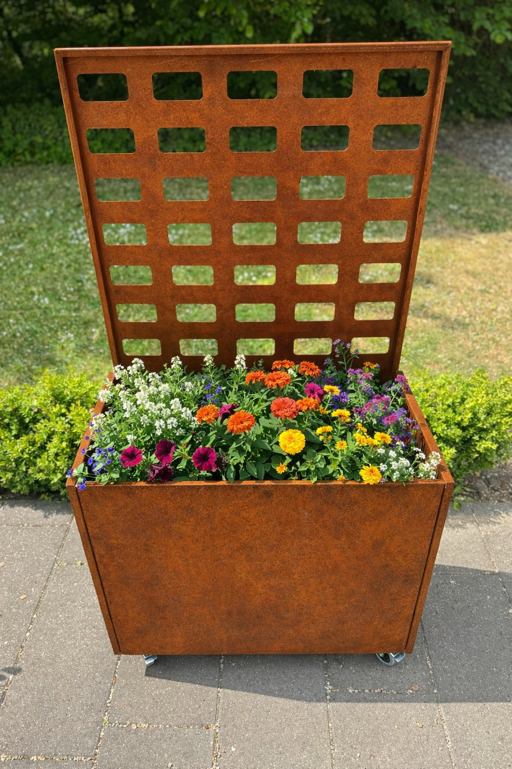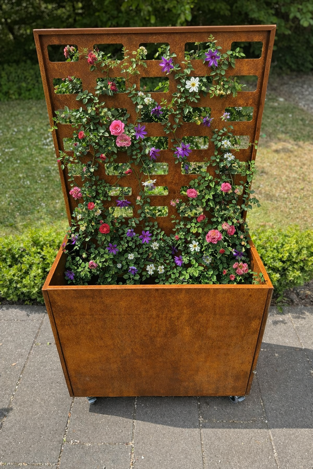 Plantekasse i 2mm cortenstål med espalier